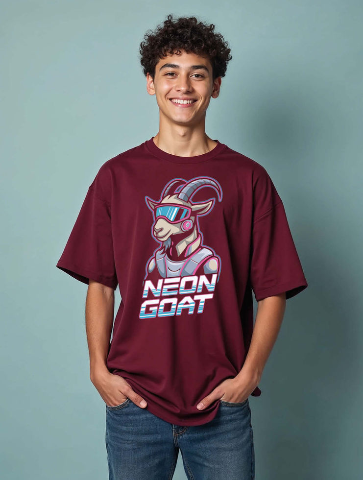 neon goat Trendy Graphic Unisex Drop Shoulder Oversized T-Shirt for Men & Women
