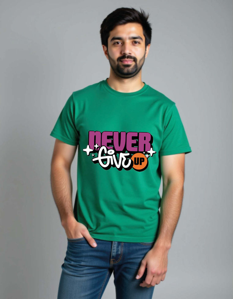 never give up Classic Cotton T-Shirt for Adults & Kids – Premium Cotton Print