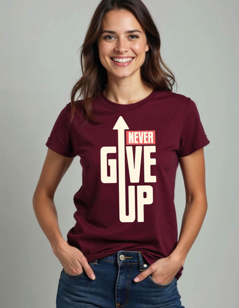 never give up Round Neck Graphic Tee for Boys, Girls, Men & Women – Stylish
