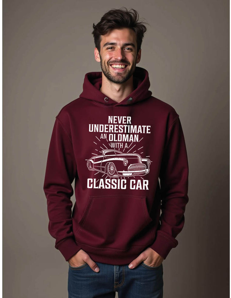never underestimate an oldma with a classic car stylish hoodies