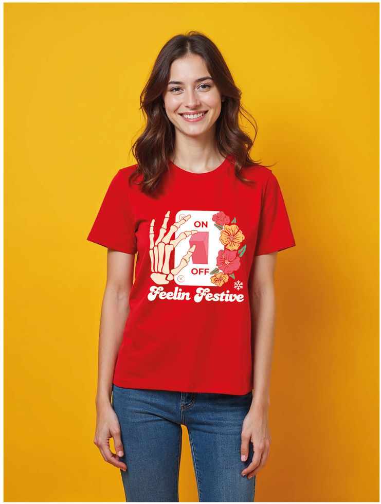 on off feelin festive Chic Women’s Printed Graphic Streetwear T-Shirt
