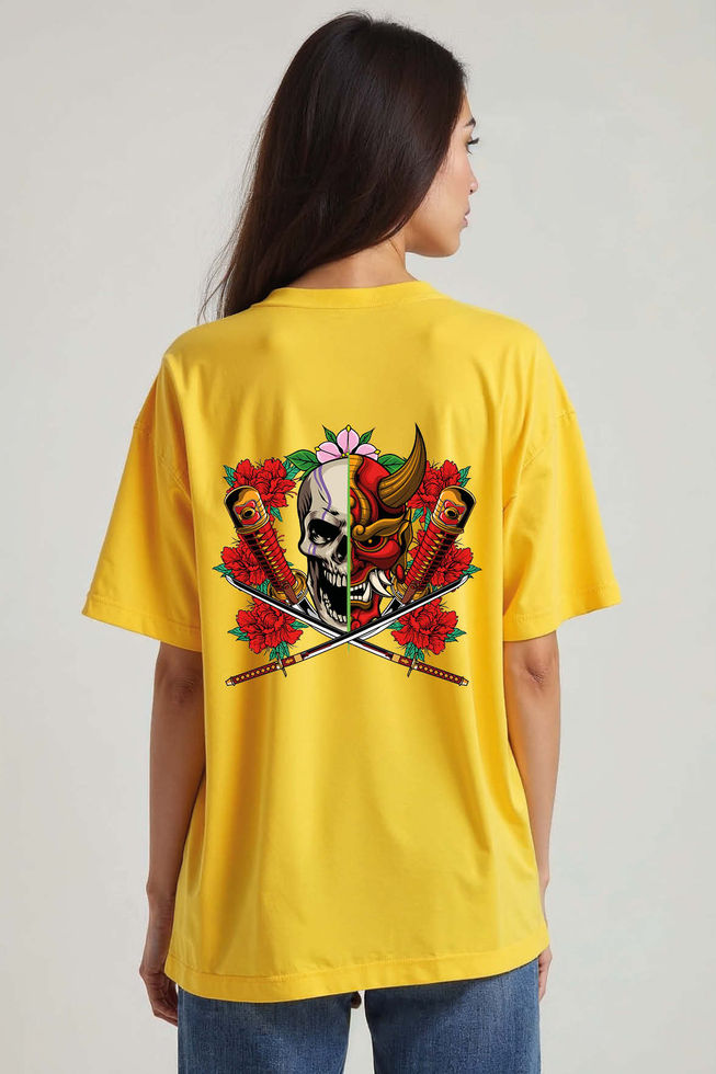 Oni Samurai Skull Urban Streetwear Unisex Drop Shoulder Oversized T-Shirt