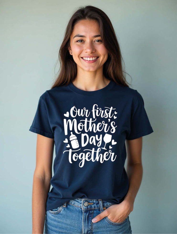 our first mothers day together Classic Womens Printed Graphic Streetwear T-Shirt