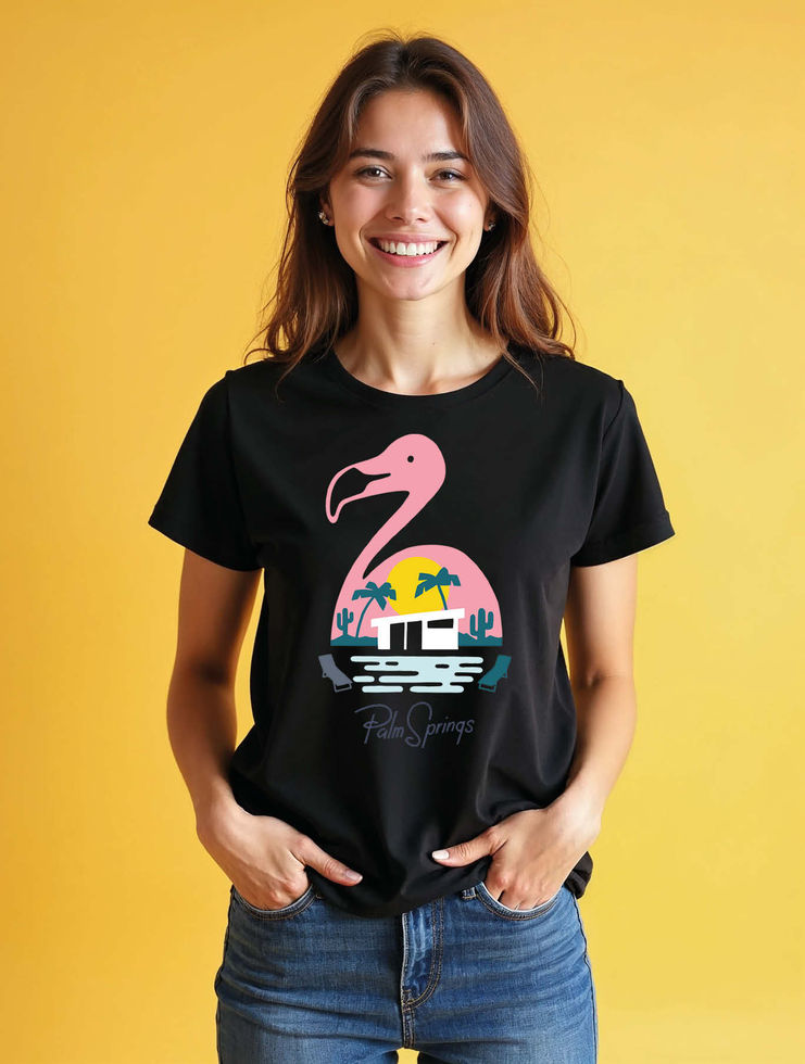 Palm Springs Flamingo Sunset Modern Women’s Printed Graphic Streetwear T-Shirt