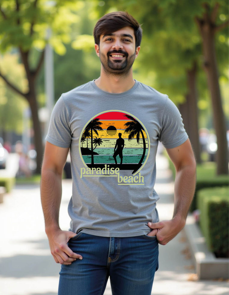 paradise beach retro landscape mens printed graphic t shirt