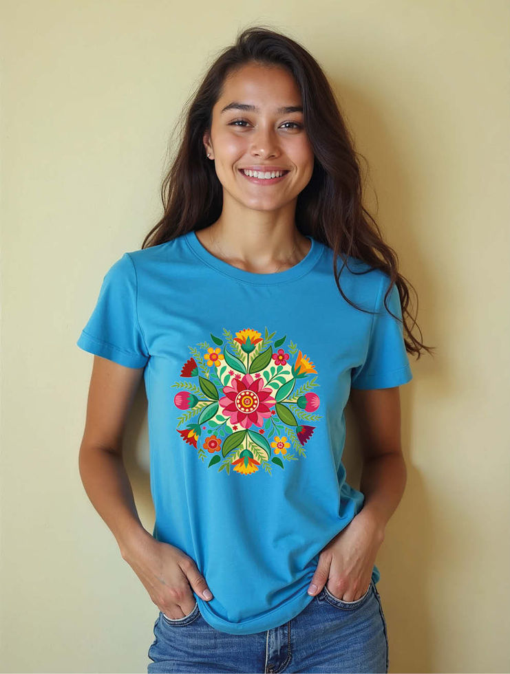 Pink Folk Art Flower Mandala Stylish Women’s Printed Graphic Streetwear T-Shirt