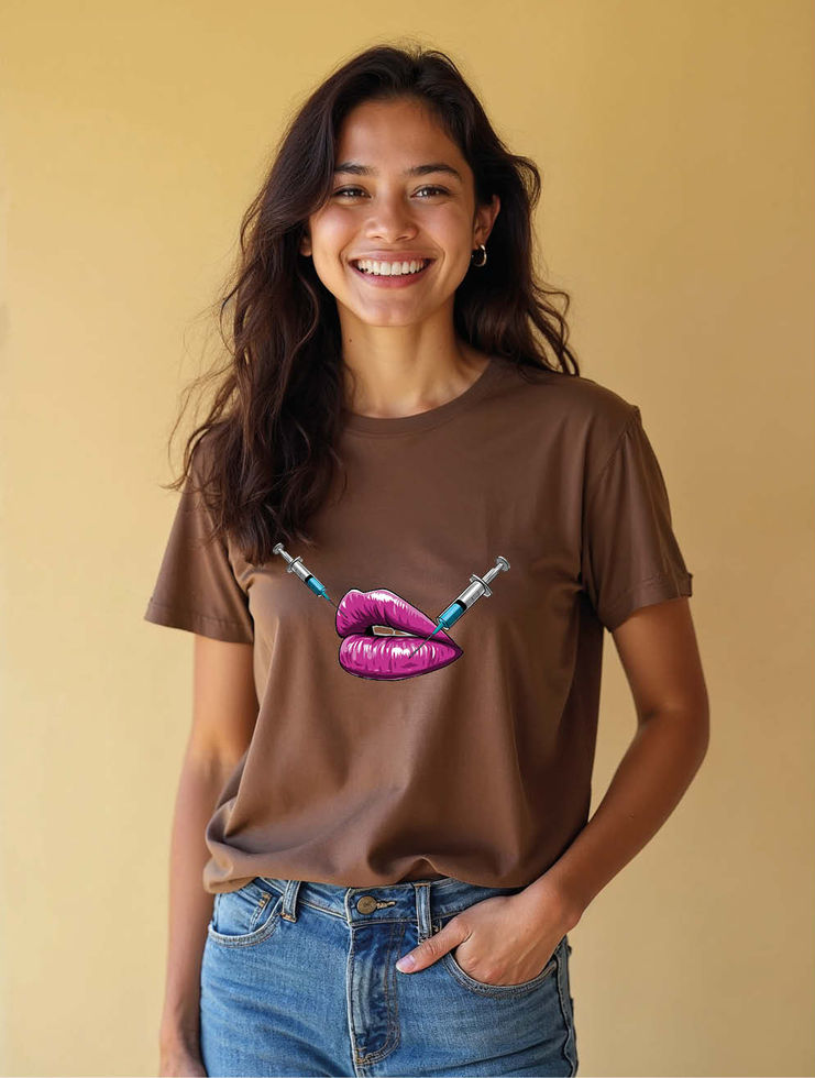 Pink Lips with Cosmetic Syringes Modern Women’s Printed Graphic Streetwear Tees