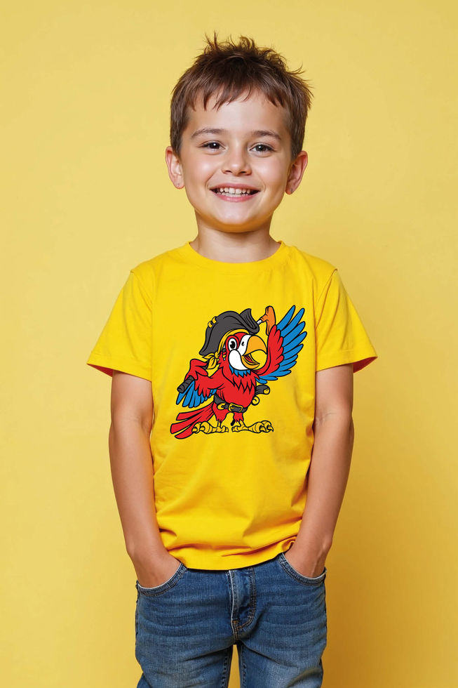 Pirate Parrot Graphic Yellow T-Shirt for Kids – Fun Cartoon Print Tee
