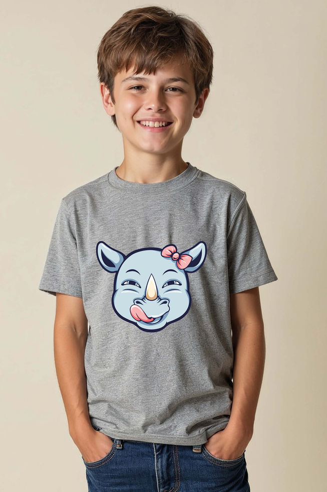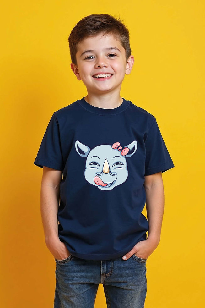 Playful Rhino with Pink Bow Kids T-Shirt Cute Printed T-Shirt