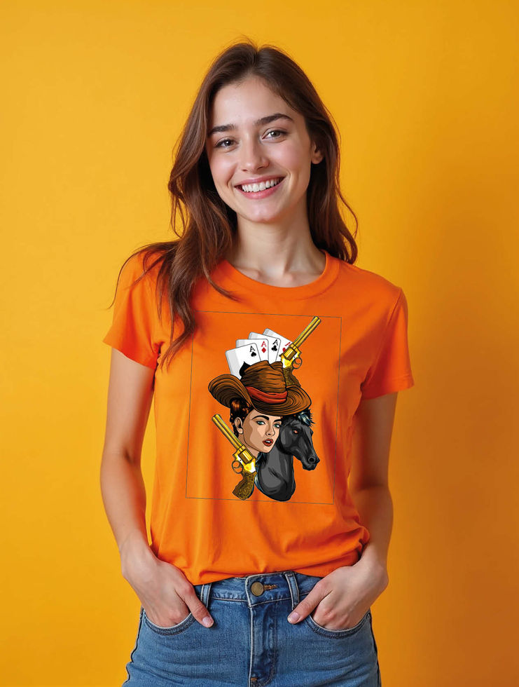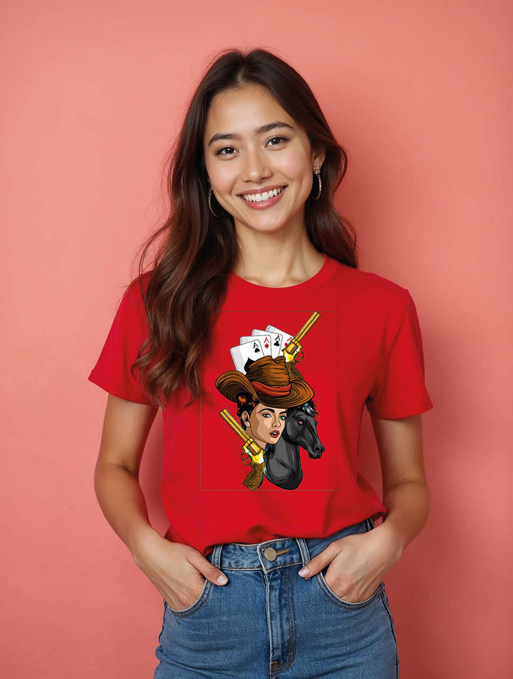 Poker Face Cowgirl Classic Women’s Printed Graphic Streetwear T-Shirt – Hot Deal
