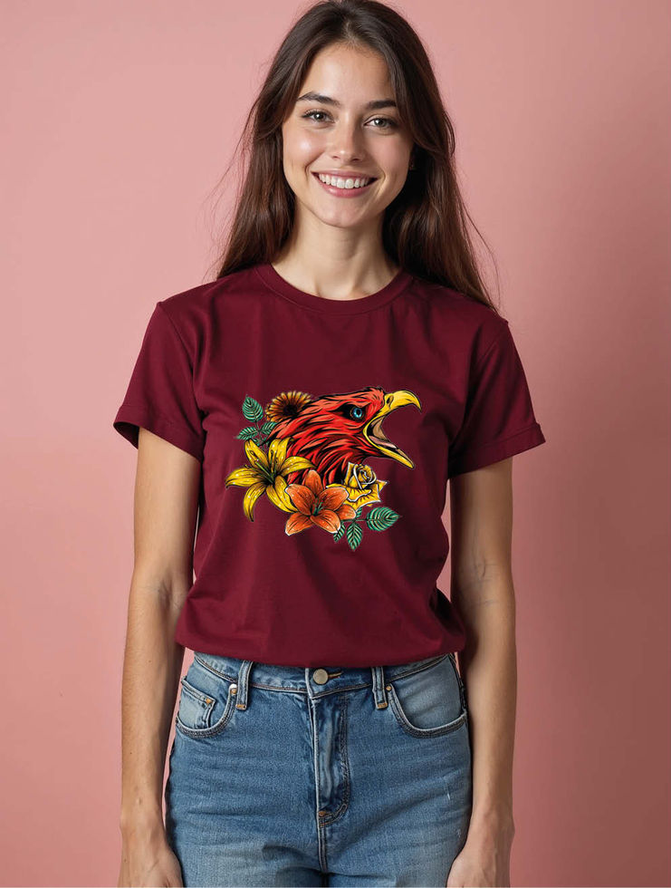 Raging Eagle Floral Casual Women’s Printed Graphic Streetwear T-Shirt – Sale