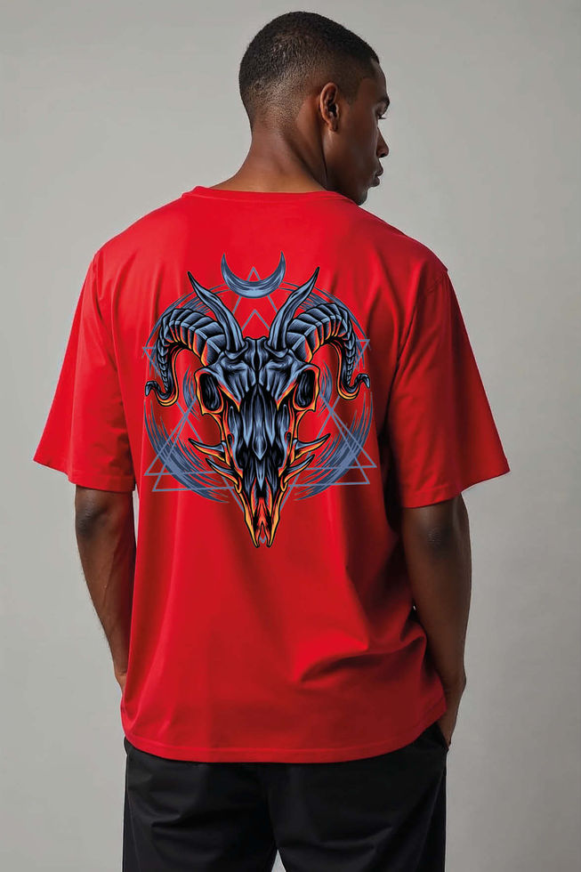 Ram Skull Occult Geometric Urban Unisex Drop Shoulder Oversized T-Shirt