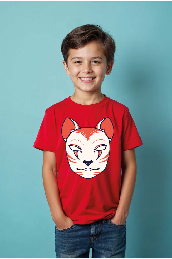 Red and White Kitsune Mask Kids T-Shirt Stylish Printed T-Shirt for Boy