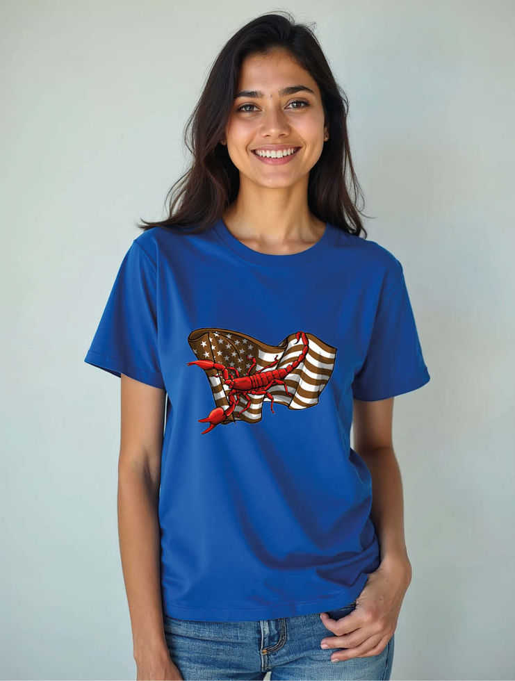 Red Scorpion with Brown Distressed American Flag Trendy Women’s Printed T-Shirt
