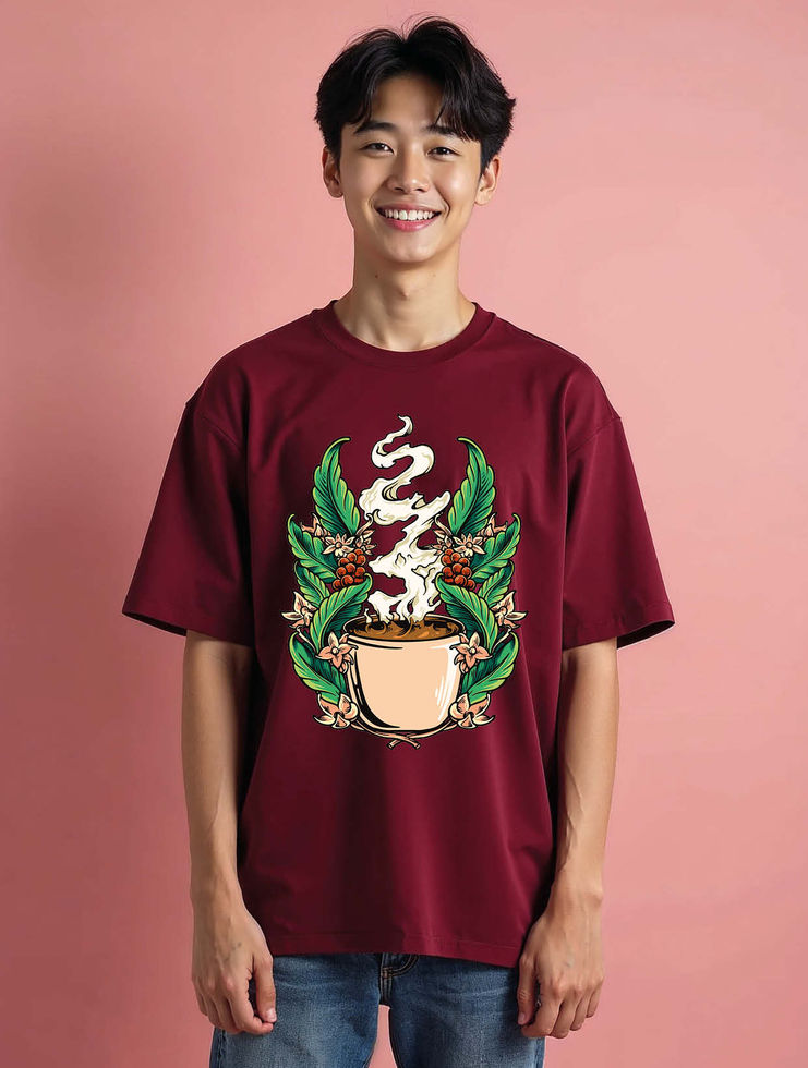 Regal Coffee Cup and Laurel Wreath Casual Unisex Oversized Drop Shoulder T-Shirt