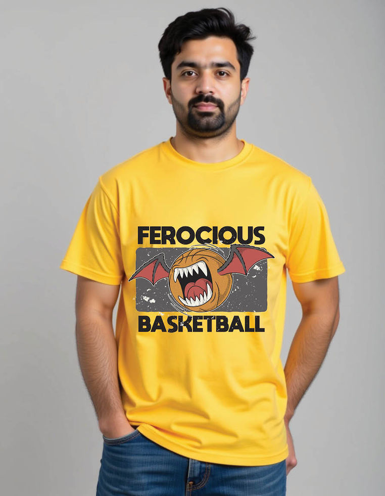 retro cartoon basketball with fangs wings mens printed graphic t shirts