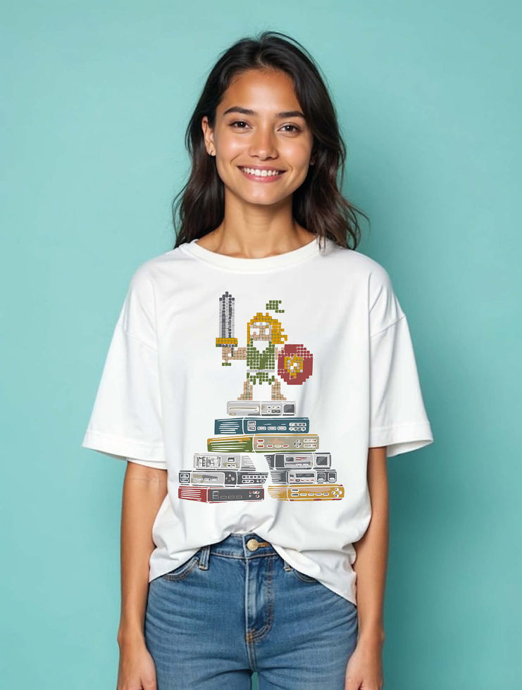 Retro Console Hero Pixel Art Cool Funny Unisex Drop Shoulder Oversized T-Shirt