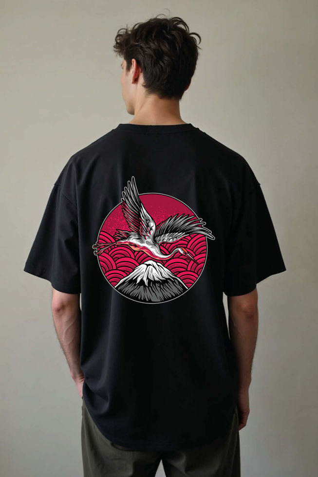 Rising Crane Mount Fuji Cool Vintage Unisex Oversized Drop Shoulder T-Shirt