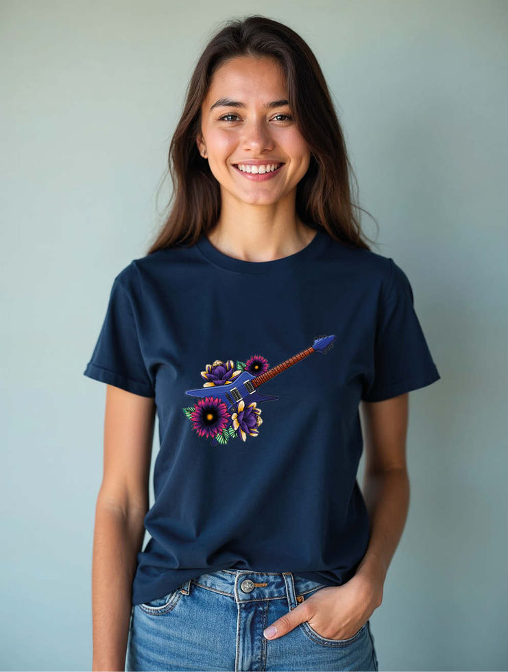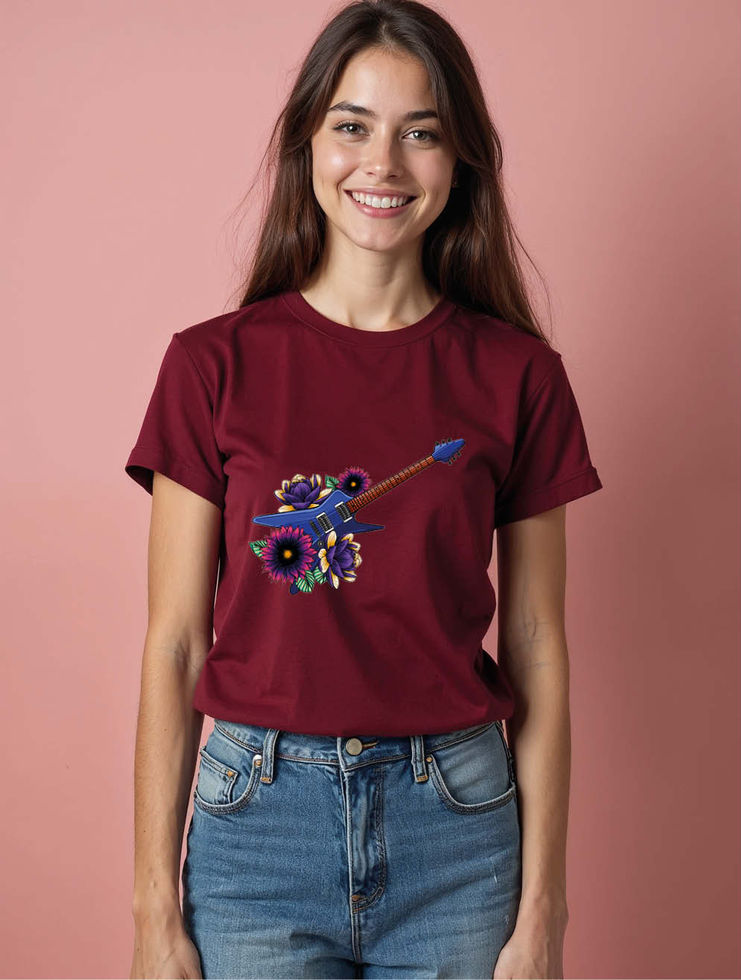 Rock Garden Guitar Casual Women’s Printed Graphic Streetwear T-Shirt – Premium