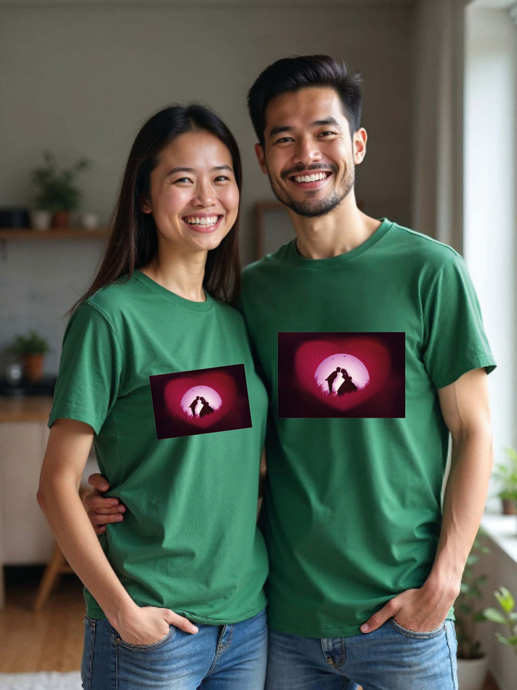 Try the premium quality pre-shrunk Couple T shirts.