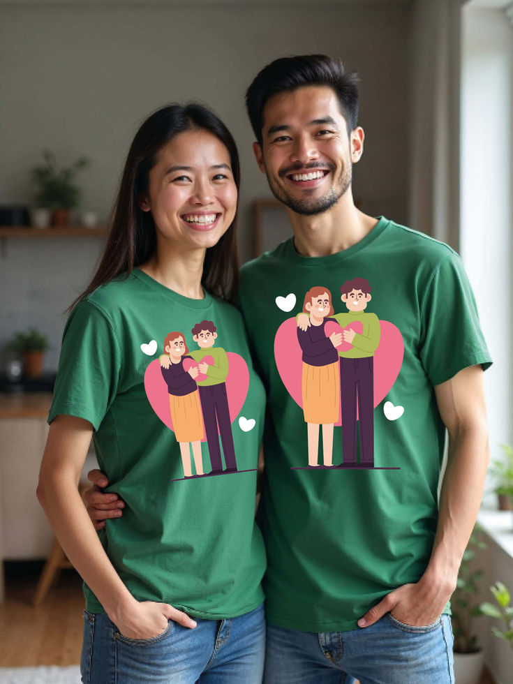 Romantic Illustration Couple T-Shirts - Fashionable Couple Style | Buy Online