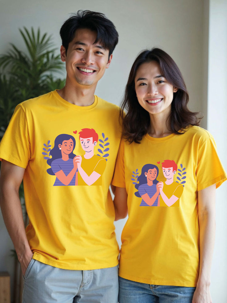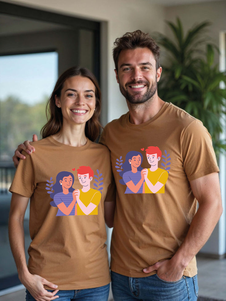 Romantic Illustration Couple T-Shirts - Romantic Printed Matching Set | Premium