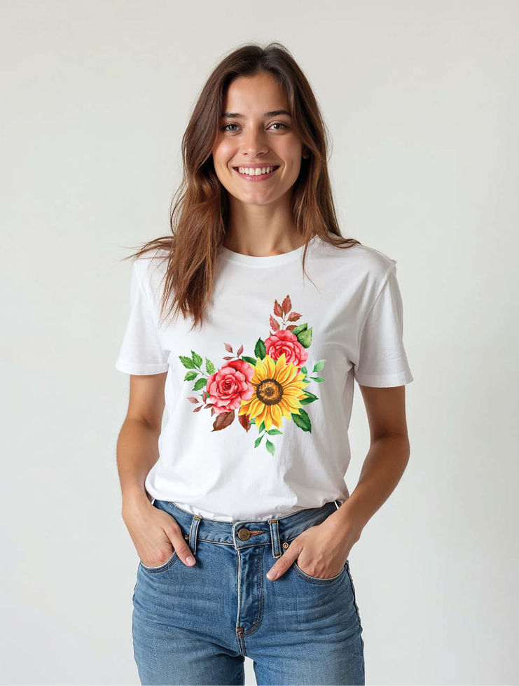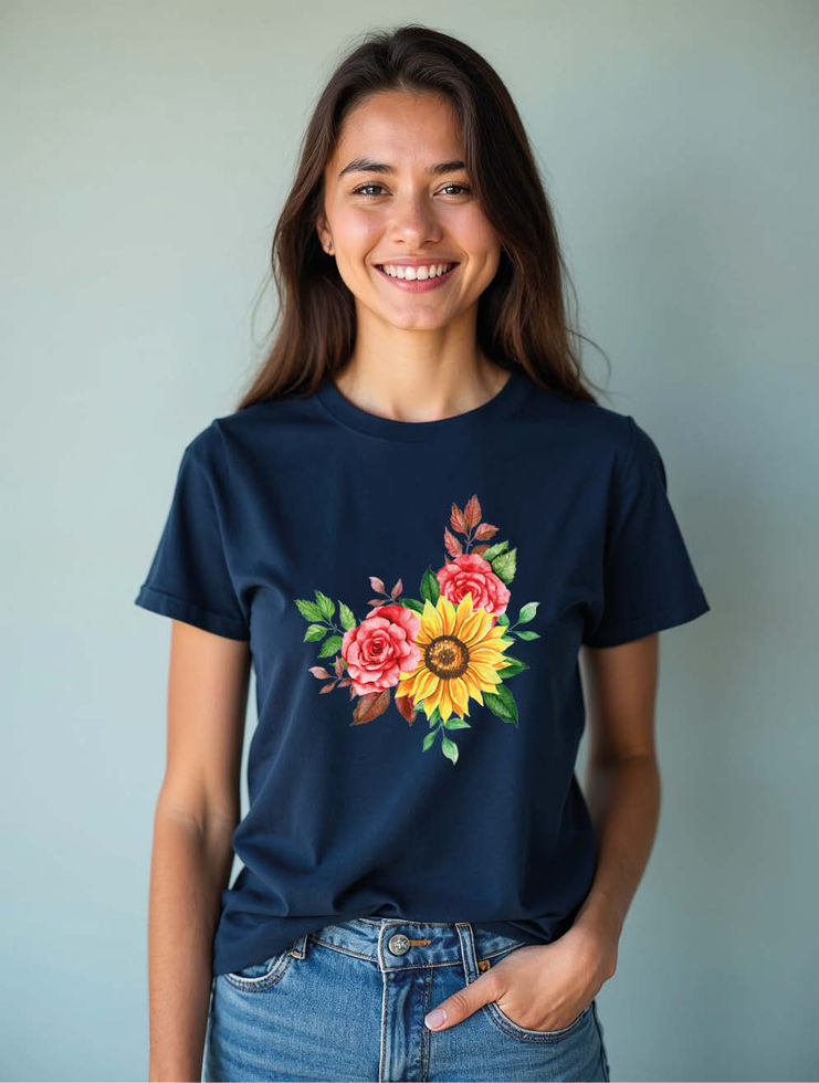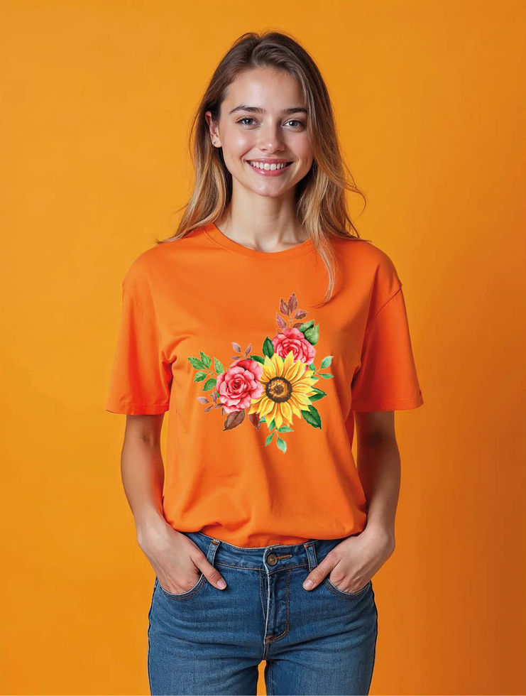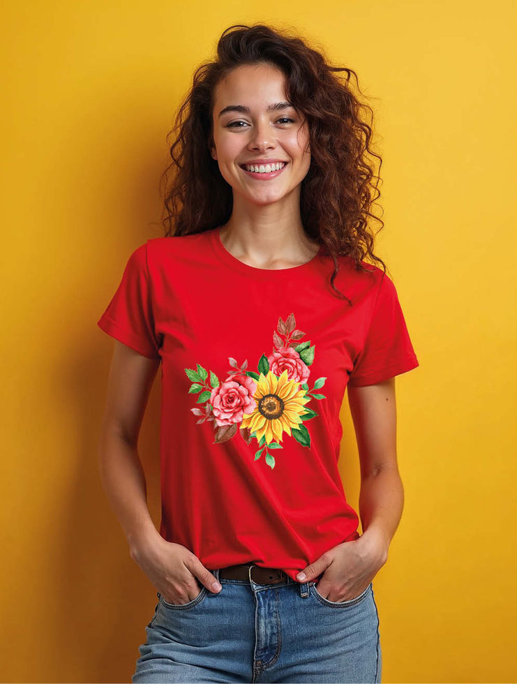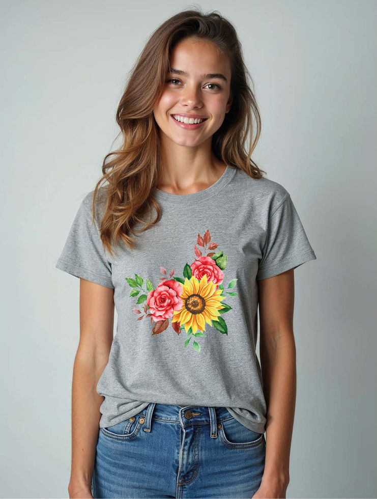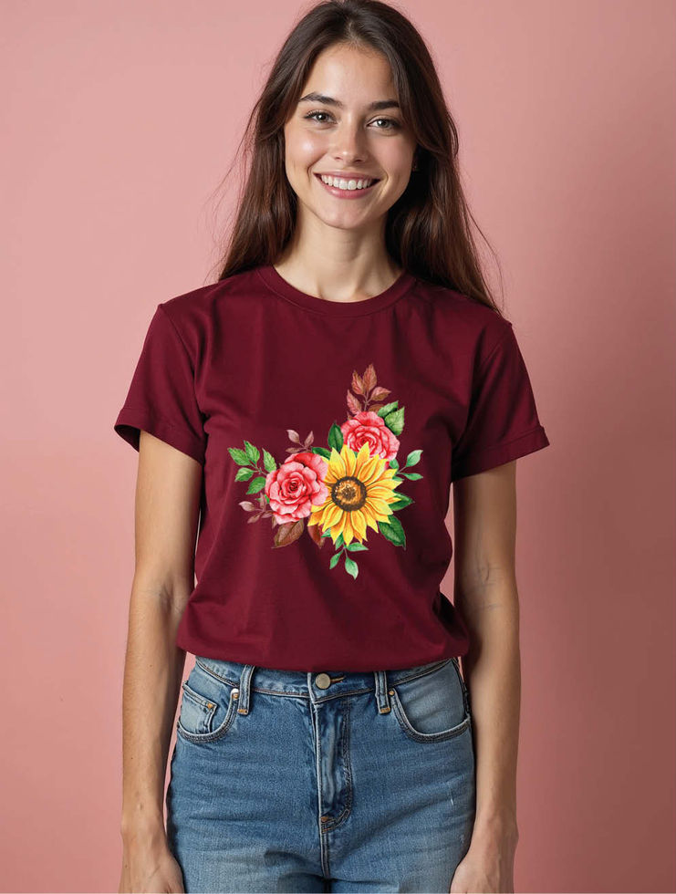 Rose and Sunflower Bouquet Stylish Women’s Printed Graphic Streetwear T-Shirt