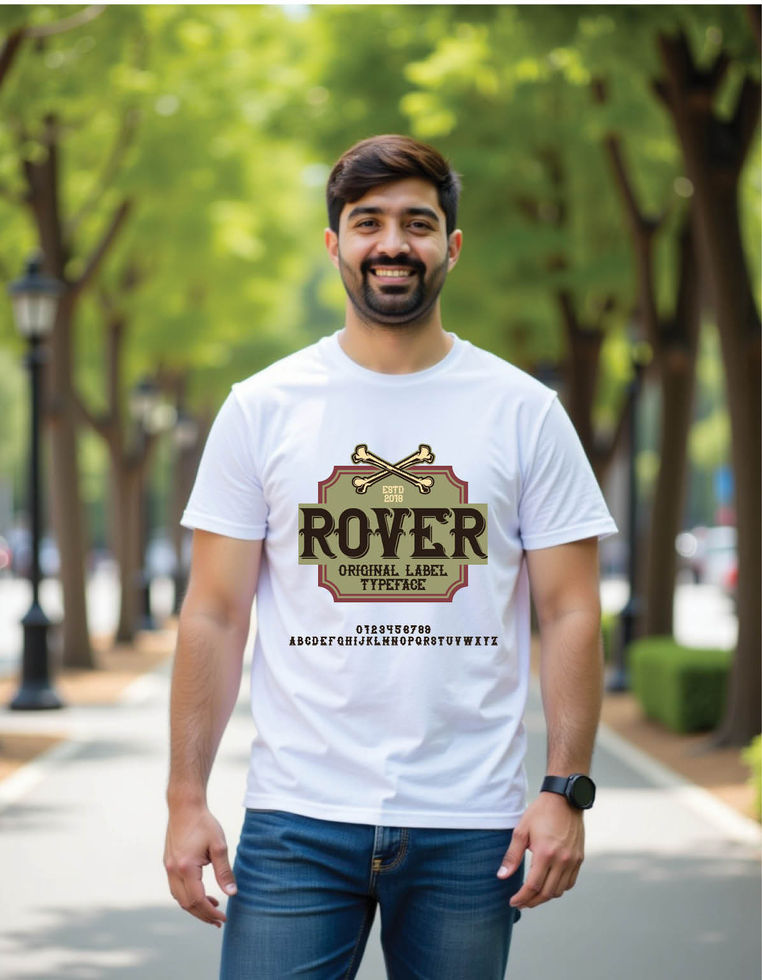 rover label typeface mens printed graphic t shirt
