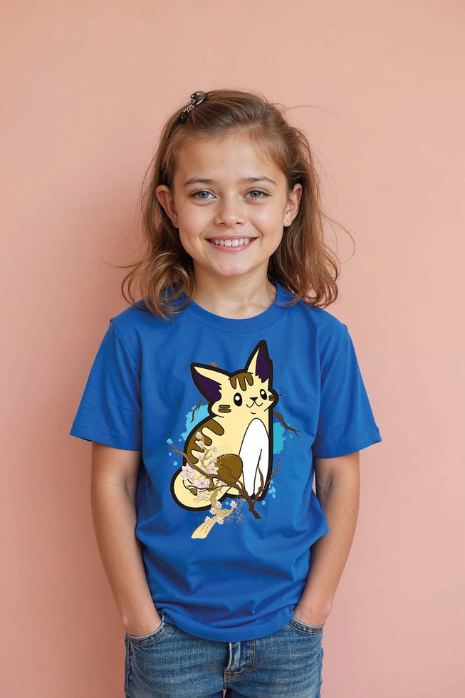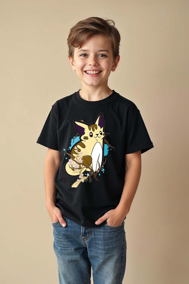 Sakura Cat on a Branch Kid's Graphic T-Shirt Cotton Printed T-Shirt