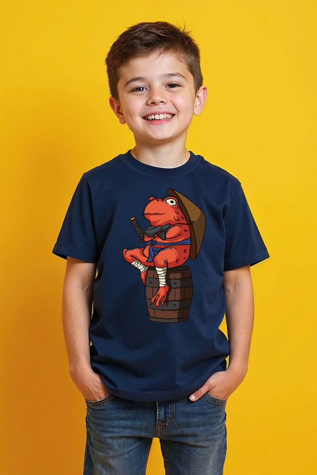 Samurai Frog on a Barrel Casual Cute Kids Typography T-Shirt – Print Design tees