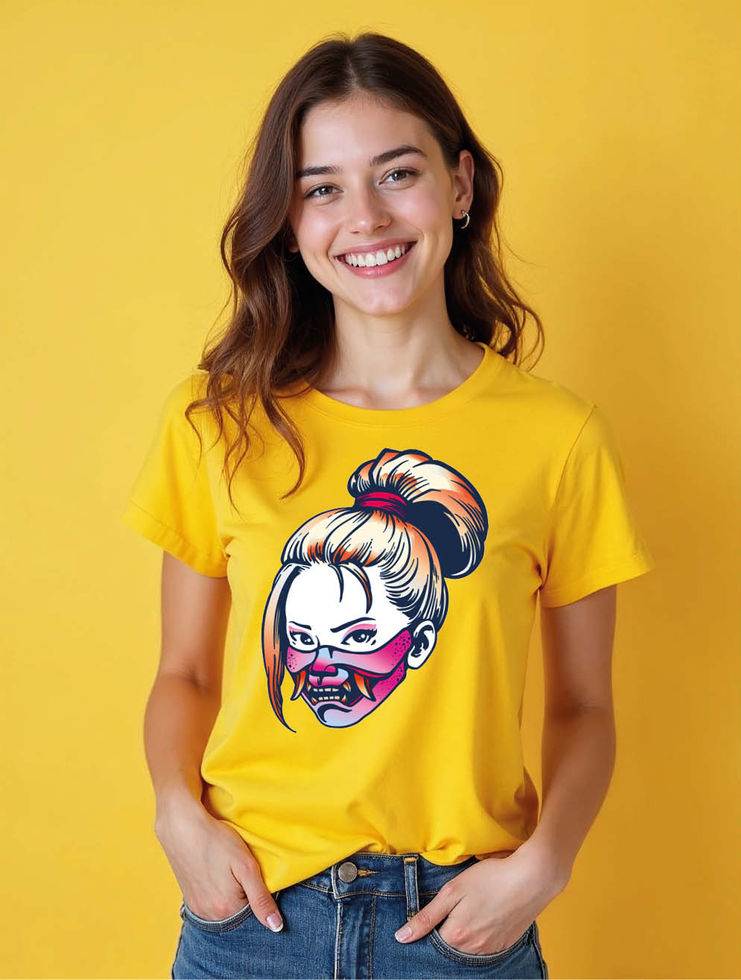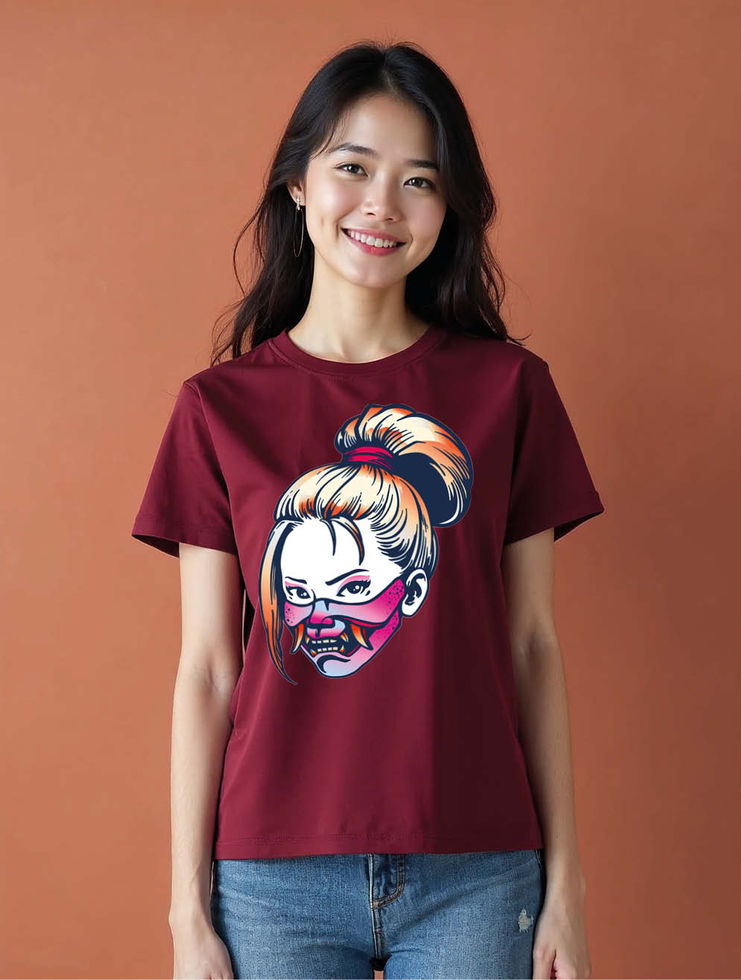 Samurai Girl Mask Modern Women’s Printed Graphic Streetwear T-Shirt – Limited