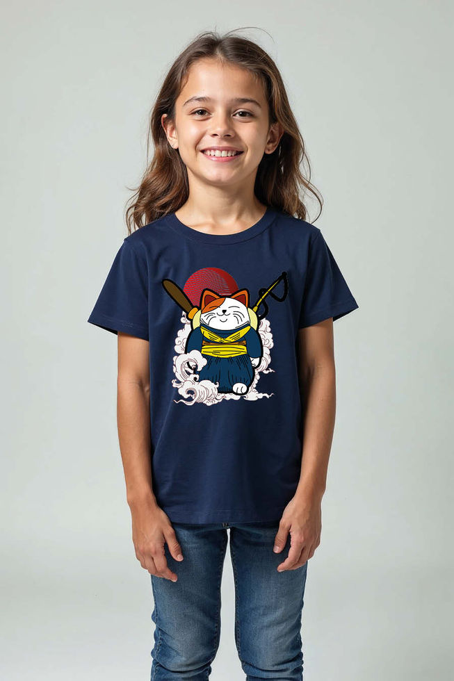 Samurai Lucky Cat Japanese Warrior T-Shirt Playful Typography Print T-Shirt
