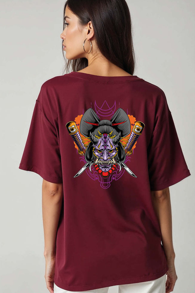 Samurai Oni Mask Classic Unisex Drop Shoulder Oversized T-Shirt for Men & Women