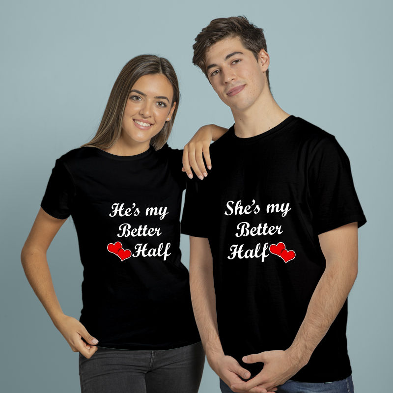 she better half his better half Couple T Shirts, Buy matching Couple tees buy