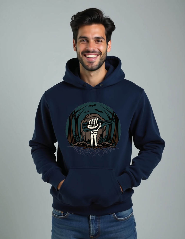 skeleton hand holiding bottle Stylish Men’s Streetwear Hoodies
