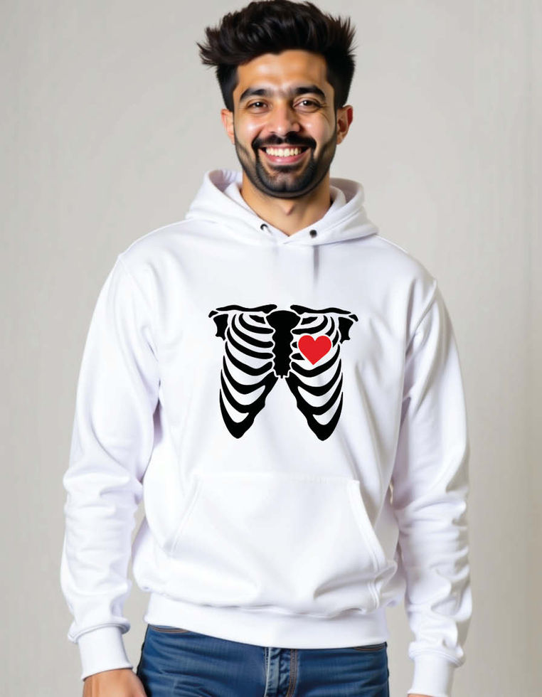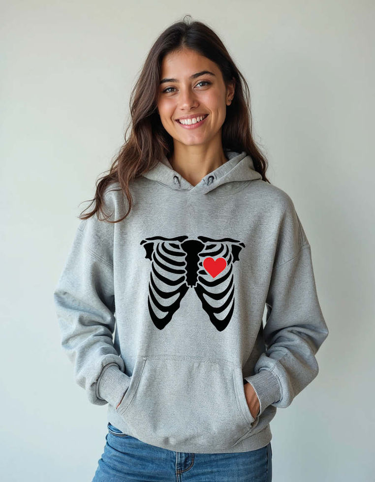 skeleton rib cage and red heart Unisex Graphic Printed Hoodies for mens & womens