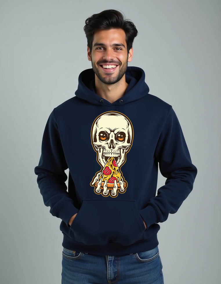 skull eating pizza Premium Quality Men’s Streetwear Printed Hoodies