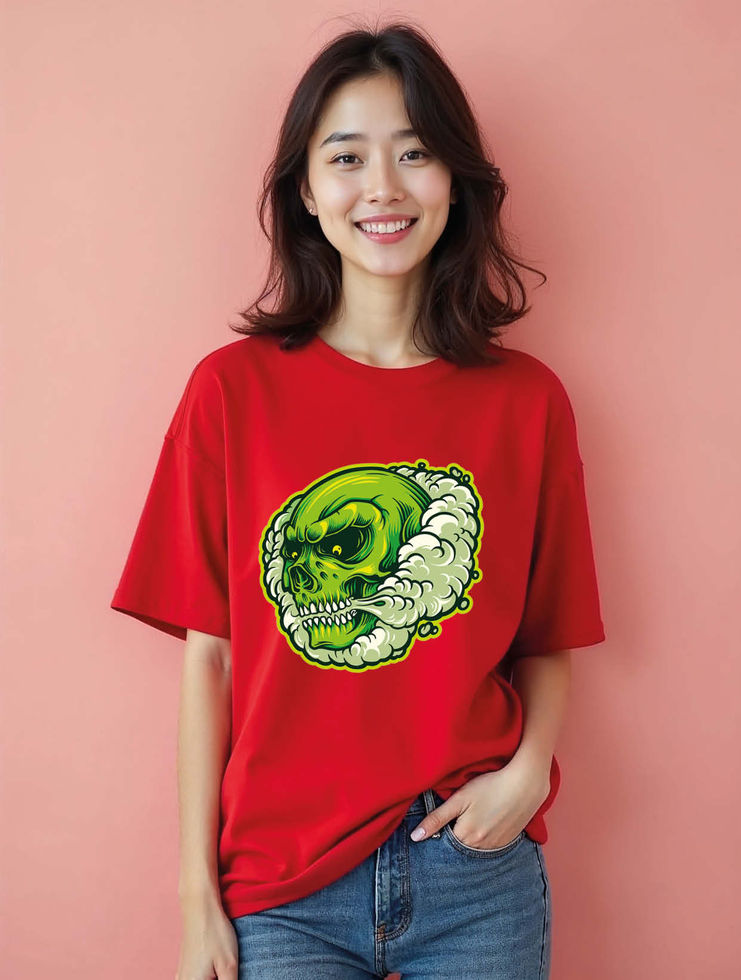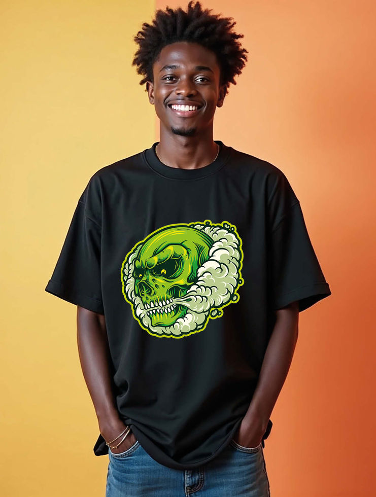 Skull with Green Casual Unisex Drop Shoulder Oversized T-Shirt For Men & Women