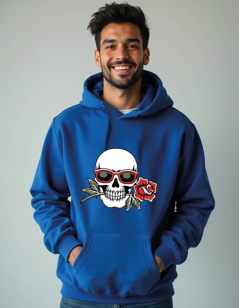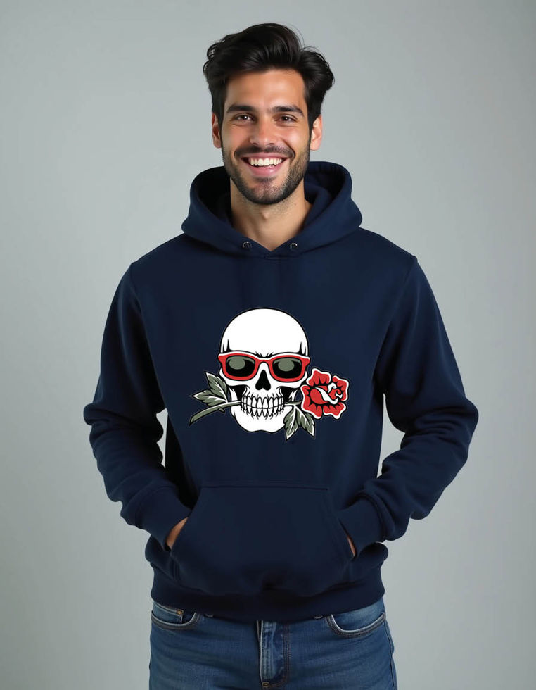 skull with rose Winter Streetwear Hoodie for Men – Oversized Graphic Print