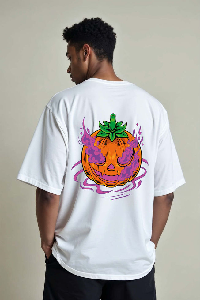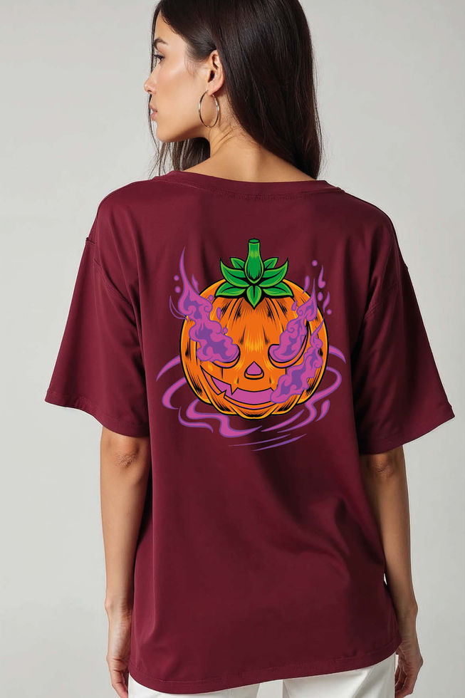 Smoky Jack Lantern Urban Unisex Oversized Drop Shoulder T-Shirt