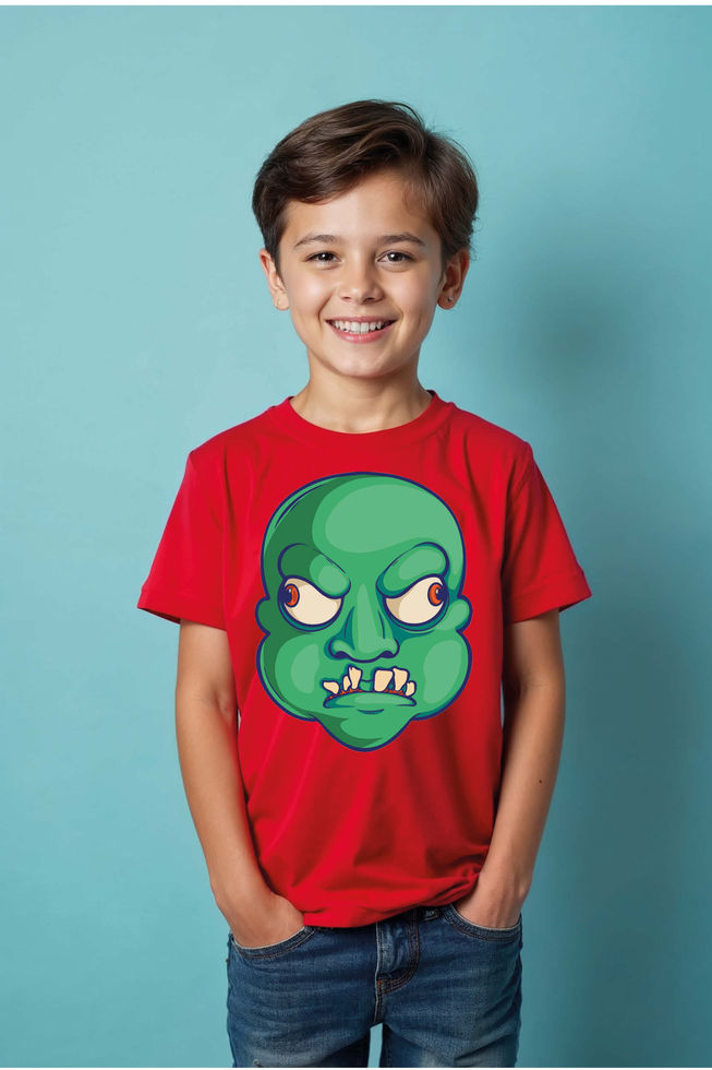 Snaggletooth Green Zombie Face Kids T-ShirtStylish Typography Print T-Shirt