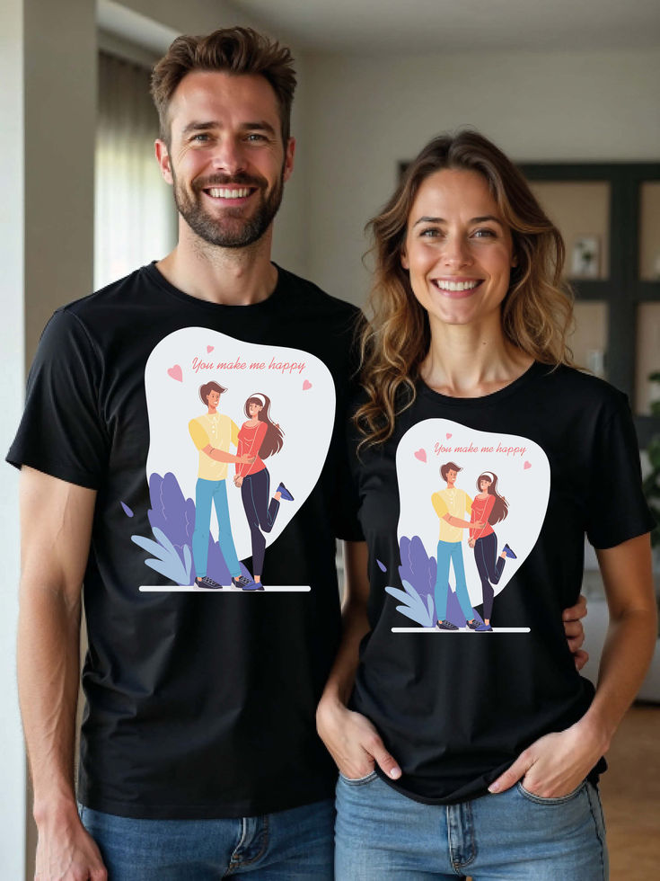 Try the premium quality pre-shrunk Couple T shirts.