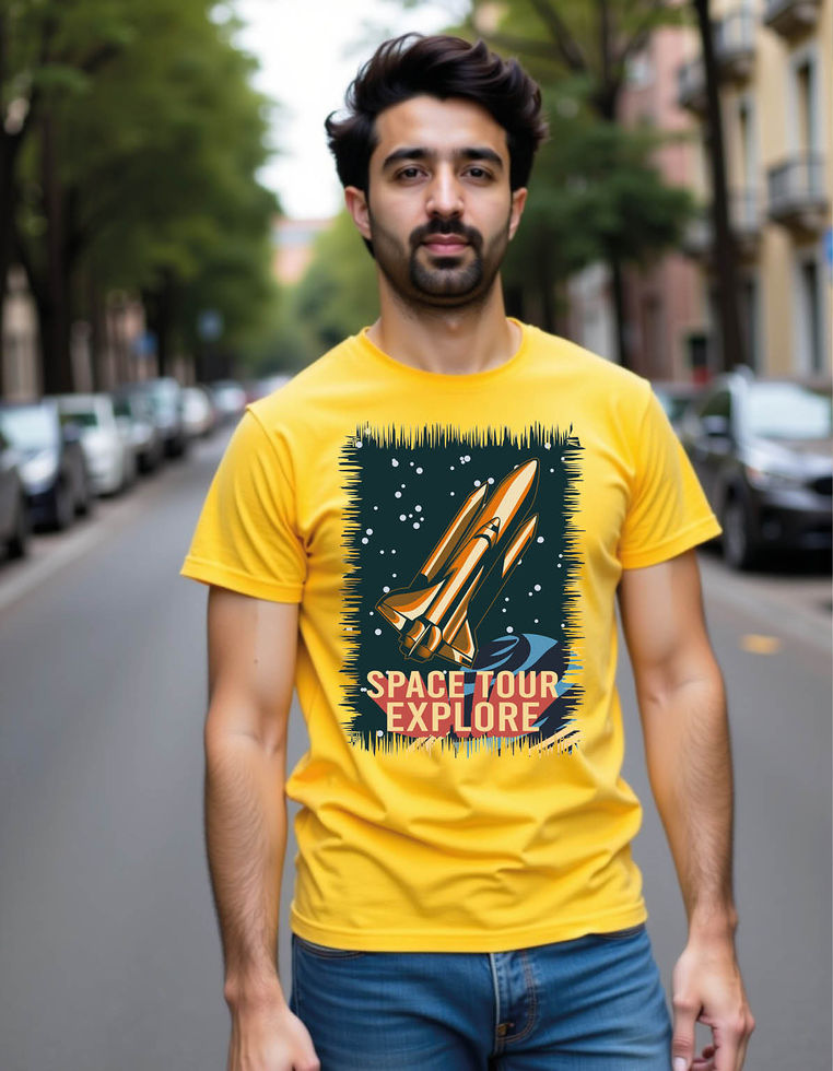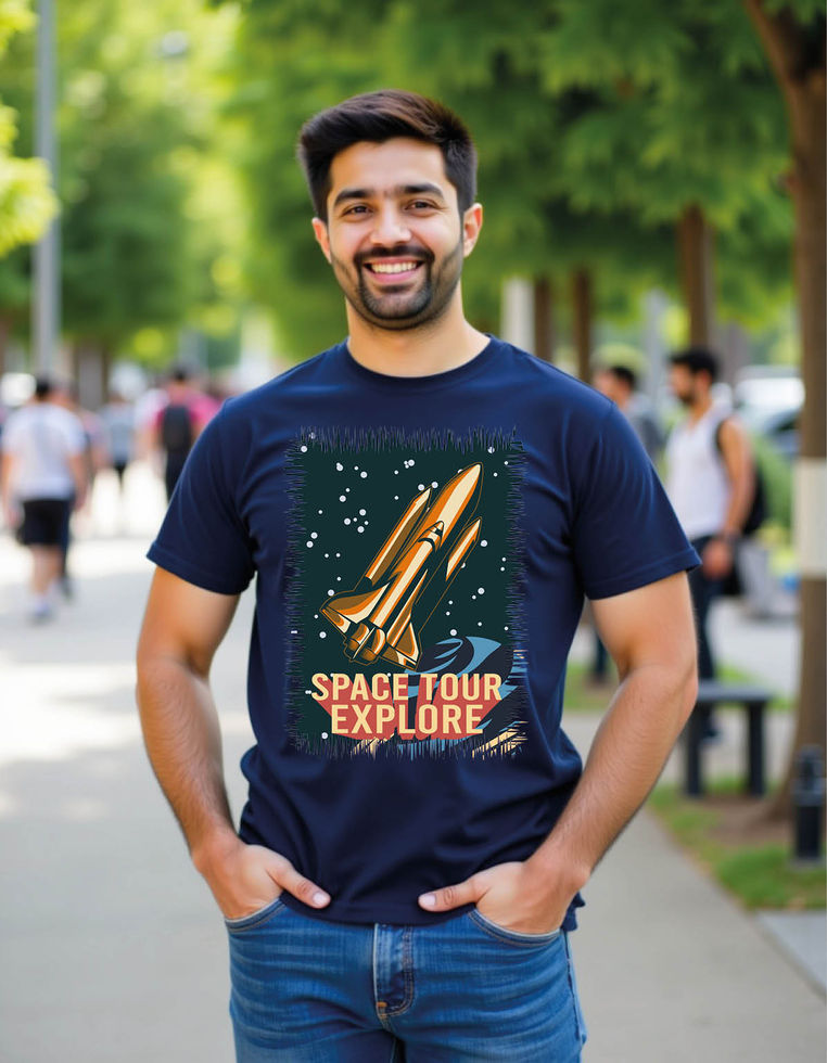 Space tour explore silhouette mens printed graphic t shirt