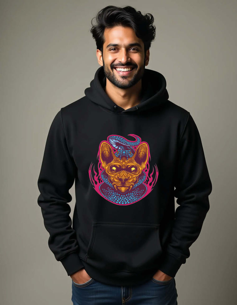 Sphynx cat mascot with a snake Unisex Graphic Printed Hoodies for mens & womens