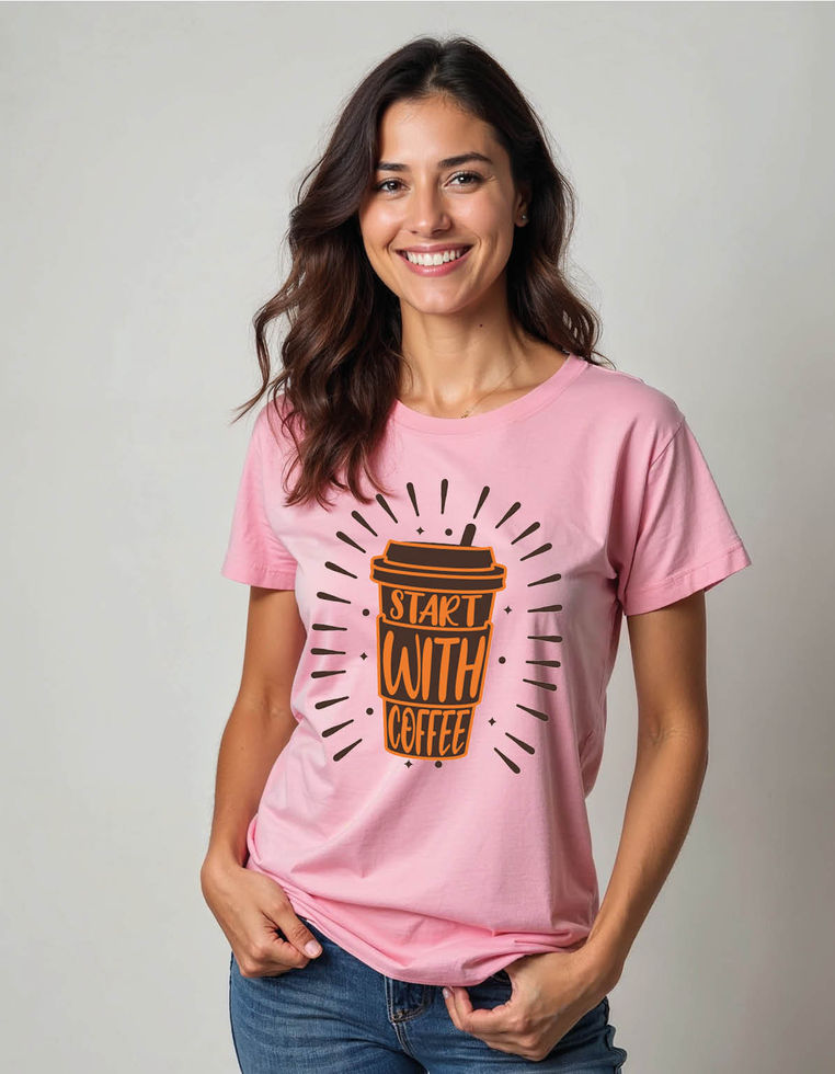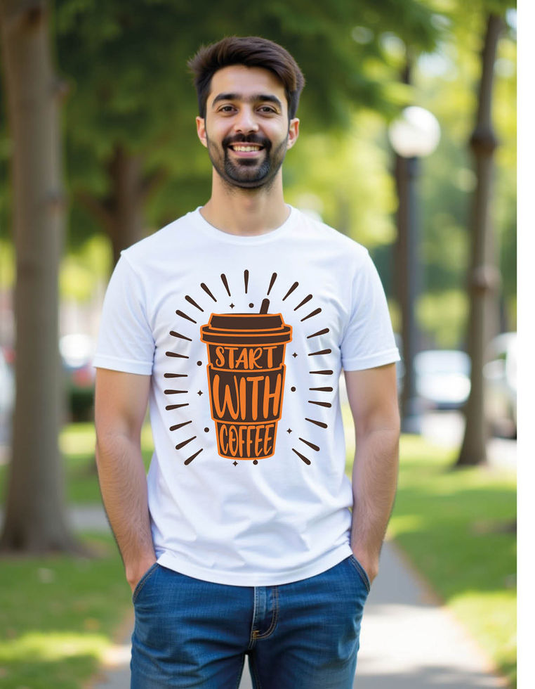 start with coffee Stylish Printed Tee for All Ages – Trendy Print Design