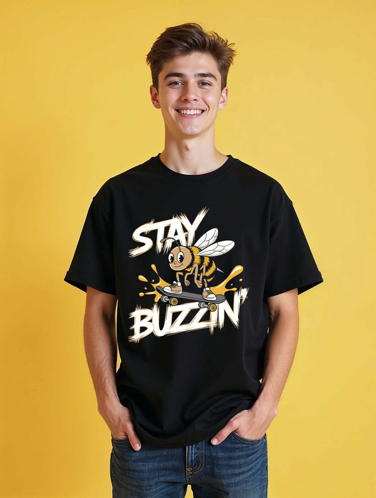 stay buzzin Unisex Oversized Drop Shoulder T-Shirt – Anime Casual Streetwear