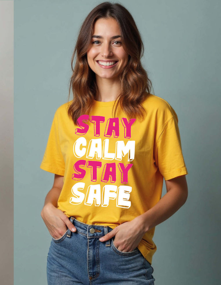 stay calm stay safe Stylish Printed Tee for All Ages – Premium Cotton Print