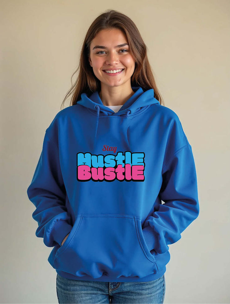 stay hustle bustle Modern Women’s Typography hoodies – Shop Now