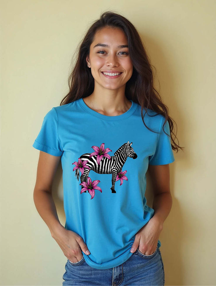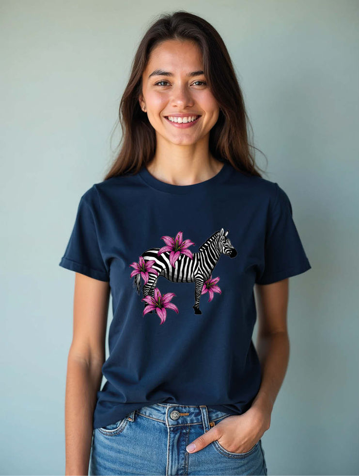 Striped Zebra Pink Lily Stylish Women’s Printed Graphic Streetwear T-Shirt