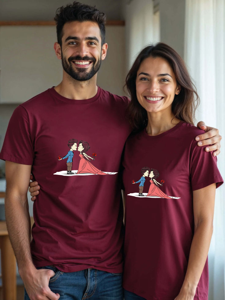 Stylish Illustration Couple T-Shirts - Celebrate Love Together | Shop Now